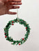 Immergiti nella magia del Natale con questo elegante pendaglio artigianale che unisce il verde intenso delle perline a delicate bacche rosse di accentuazione. Ogni pezzo è realizzato con cura, con perline scintillanti in tonalità verde smeraldo che richiamano i pini invernali, e bacche rosso vivo che evocano l’energia calorosa delle feste.