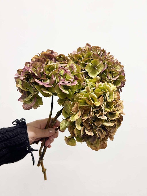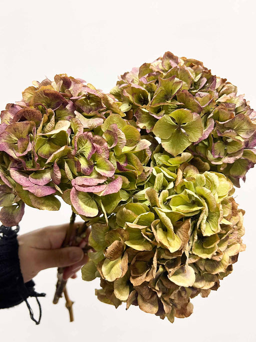 Visualizza tutti i dettagliLEONARDA » 3 Ortensie essiccate dalle tonalità sfumate del verde e rosa scuro