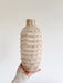 Un richiamo tattile alla terra e alla natura. Il vaso HASHLY si distingue per la sua superficie lavorata a rilievo, caratterizzata da scanalature orizzontali che creano un gioco dinamico di luci e ombre.