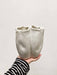 Vaso in ceramica bianca dal profilo irregolare e morbido, caratterizzato da una forma organica che lo rende estremamente versatile. Le sue linee fluide e la finitura opaca valorizzano qualsiasi tipo di composizione, dai fiori secchi e stabilizzati alle semplici foglie decorative.